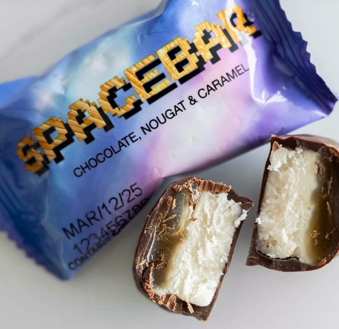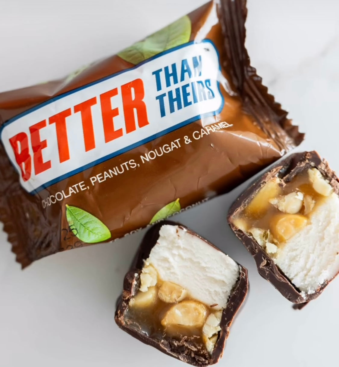 A delightful treat with layers of chocolate, peanuts, nougat, and caramel